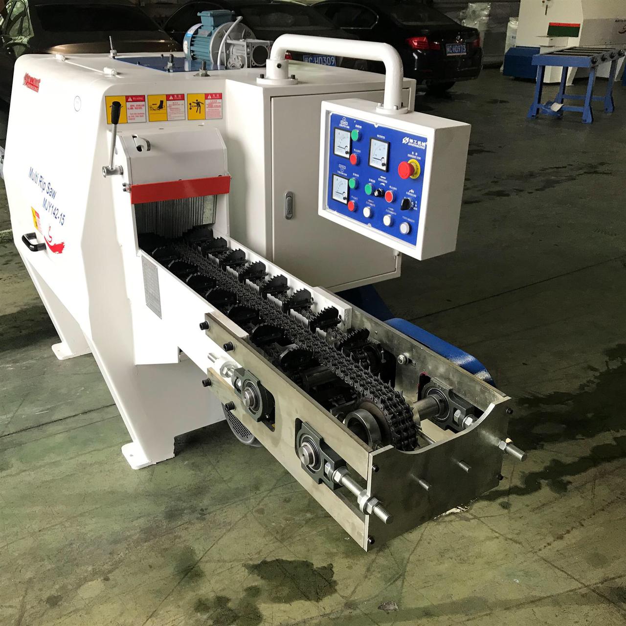 Work side ramp multi rip attachment installed on electric motors operated L 10.5 x W 2.4 meters side ramp operated by 24 V DC actuators. 7.6 kWt sawdust aspiration system dimensional/multirip saw connected with H 2000 mm x D 800 mm cyclone attachment and 3 meters cleaning hose.